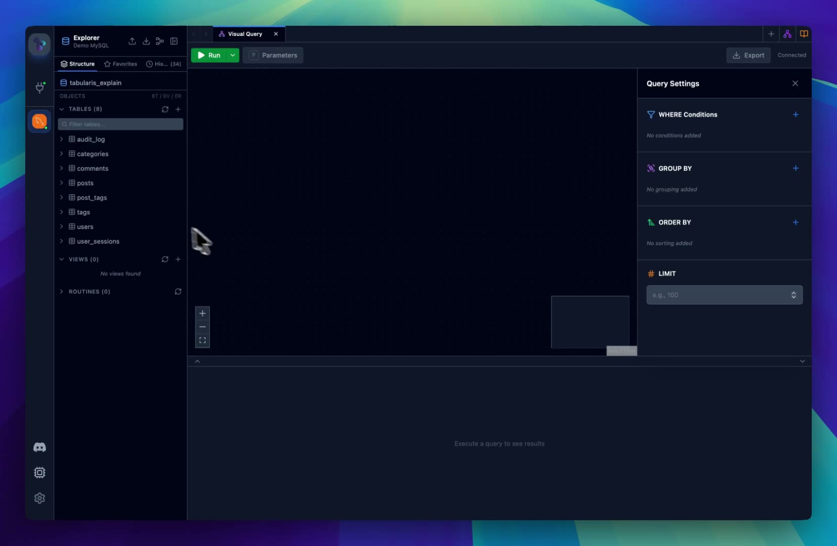 DemoVisual Query Builder DemoBuild joins, filters, and aggregations visually, then inspect the generated SQL before running it.