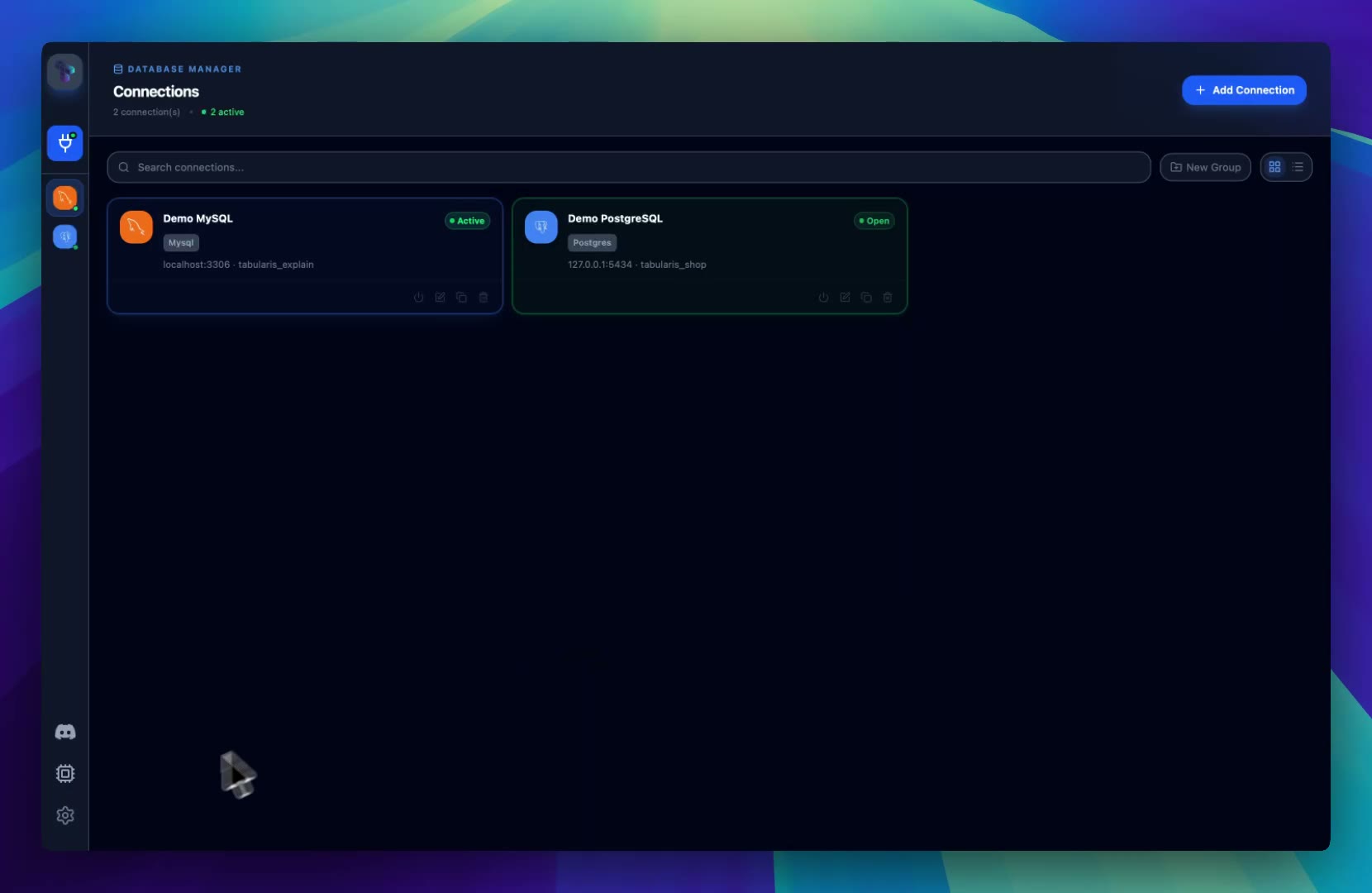 DemoCreate Your First Database ConnectionConnect Tabularis to a local or remote database and understand the connection workflow before your first query.